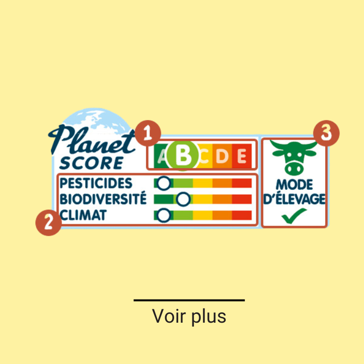Planet-score® est un système d’évaluation et d’étiquetage environnemental des produits alimentaires qui vise à informer les consommateurs et à accompagner les acteurs de l’agroalimentaire dans leur transition écologique. Conçu par des scientifiques et experts indépendants, soucieux de l’intérêt général, cet outil offre une vision complète et sans concession de l’impact environnemental des aliments, de la production agricole jusqu’au consommateur final.
